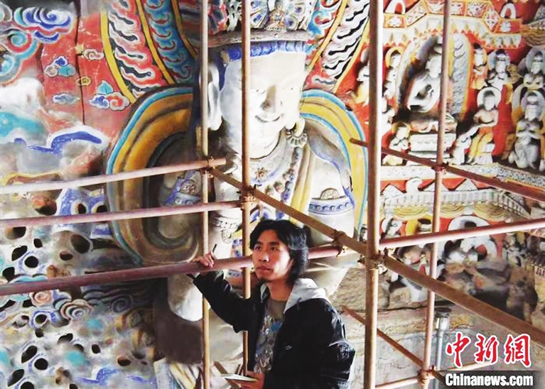 在复原云冈石窟的第十号窟时,史延春介绍,“当时,那尊主佛的佛像已经不在了,我们就根据周边窟里佛造像的风格进行重塑,包括色彩也是仿旁边窟的颜色。”通过前期资料收集、技术手段、专家介入参与等,成功完成复原任务。