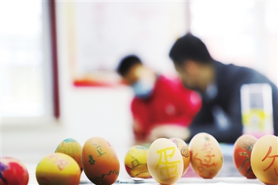 “春分立蛋”是我国民间的一个传统习俗,以庆祝春天的到来。活动开始后,社区工作人员为孩子们普及了关于春分这个节气的知识。接着,志愿者给小朋友发放了一个鸡蛋,启发他们发挥自己的想象力,用画笔在鸡蛋上画出春的样子或者自己喜欢的图案、文字。不一会儿,冰墩墩、小乌龟、地球家园、春意盎然、七彩绣球等图案就呈现在了大家眼前,还有小朋友在鸡蛋上写了“立蛋”“春分”等字样。随后,在志愿者的指导下,孩子们一边小心翼翼地将手中的鸡蛋大头朝下放在桌面上,一边寻找着支撑点和平衡点,一次次试着让鸡蛋立稳。终于,第一个成功立蛋的小朋友欢呼起来……