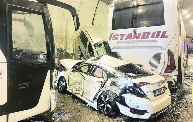 博卢省一隧道当日发生多辆汽车连环相撞事故,造成数十人受伤。据报道,事故发生在博卢省的博卢山隧道,波及18辆轿车、卡车、半挂车和城际客车,导致隧道交通一度中断。 新华社 发