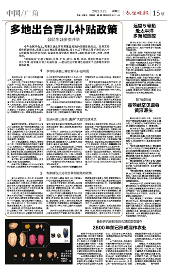 去年11月,广东省发布的《广东省公共服务“十四五”规划》提出,积极吸纳国际社会有益经验,探索对生养子女给予普惠性经济补助。今年1月,北京市印发的《关于优化生育政策促进人口长期均衡发展的实施方案》提出,逐步建立完善家庭养育补贴制度。