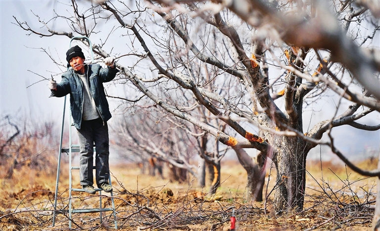 3月24日,阳曲县西黄水村,村民正在给苹果树进行修剪。春季果树发芽前,果农都要修剪树枝,帮助果树减少养分消耗,确保果品提质增收。韩双喜 摄