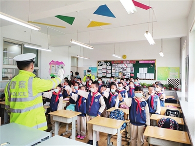 3月24日,迎泽区起凤街小学开展交通安全进校园活动,迎泽交警一大队民警向学生们普及交通安全知识,提升安全意识。 张昊宇 摄