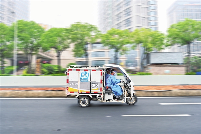 近日,福建泉州多个区域划为封控区、管控区。为保障疫情期间居民生活物资保供配送需求,泉州市多家快递公司的快递小哥组成一支生活物资保障队。目前,这支队伍有义务派送小哥100多名,他们每天穿梭在城区各个点位,织起了一张有速度、有温度的生活物资配送保障网。