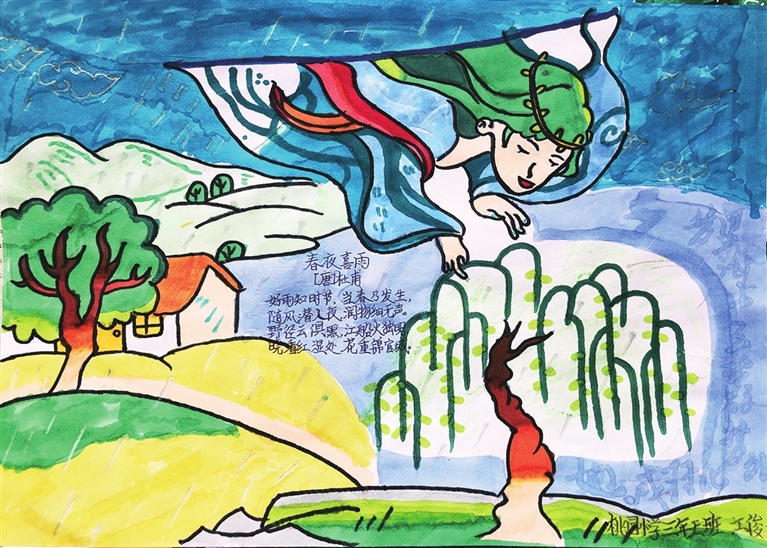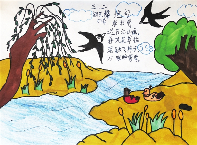 邀请孩子们为古诗词配画,这是我们新开的一个版面。 品味唐诗宋词的美好,当孩子们铺纸勾勒出心中领悟到的意境与生命力时,诗便不再是远方。
