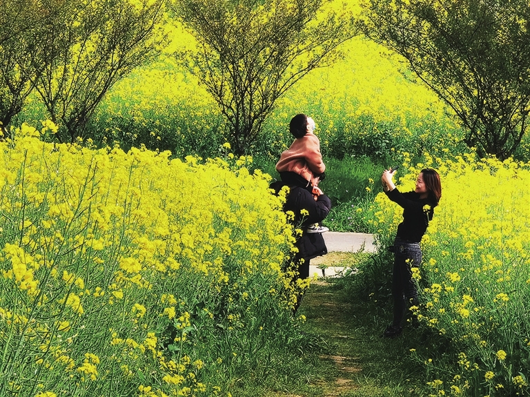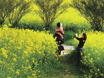 3月28日,游人在桠溪国际慢城油菜花田拍照。