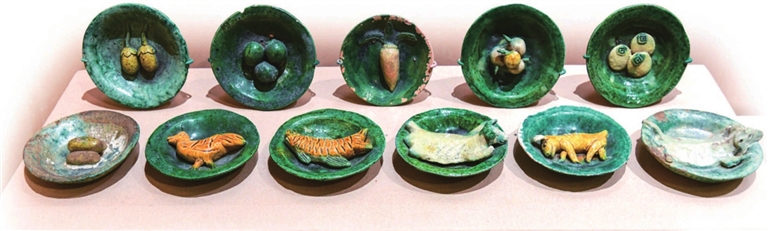 一个带有镂空炉壁的汉代铜烤炉在展览中亮相。使用时,炉内放炭火,炉上放置肉串或肉块,烤制肉串时可将穿着肉块的铁扦直接搁置在炉架上;烤制肉片时则需在炉上放置一个铁箅子,把肉片置于箅子上烤食。在铜烤炉前驻足,仿佛能看到了汉代人烤肉佐酒的场景,肉片在烤炉上“滋滋”作响,肉香四溢,扑面而来。