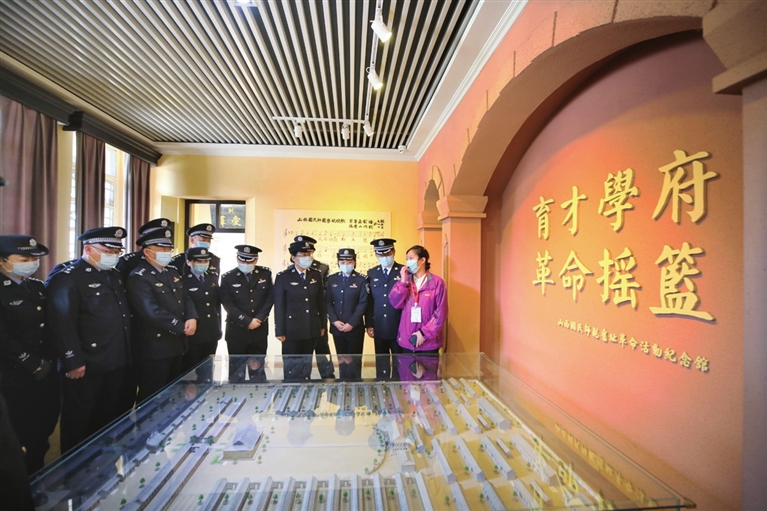 随后,民警列队参观了山西国民师范旧址革命活动纪念馆。在展览室,一幅幅逼真的画面,一幕幕感人的场景,一件件珍贵的文物,使民警们重回到那个战火纷飞的年代。