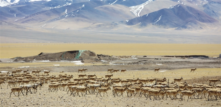 连日来,西藏阿里地区改则县出现大规模藏羚羊聚集现象。据改则县林业和草原局估算,目前聚集于此的藏羚羊将近一万只。如此规模的藏羚羊聚集比较少见,场面壮观。这与西藏生态持续向好、保护成效、栖息地安全等分不开。 新华社 发