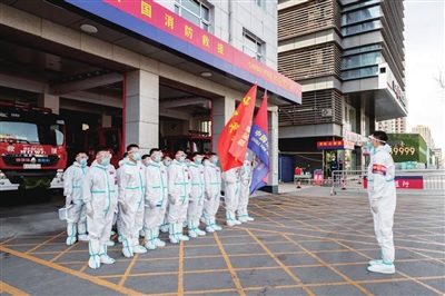 疫情发生的第一时间,市消防救援支队的消防救援人员纷纷递交请战书,要求到抗疫一线参加处置工作。4月5日,小店消防救援大队大营盘站接到相关任务,他们立即出动3车22人,奔赴封控区南坪头村、岗头村进行消杀工作。在南坪头村共消杀23000平方米,对幼儿园、村委会、长风魔玛小区等重要区域进行了消杀;在岗头村共消杀2000平方米,对主干道、村委会等重要区域进行了消杀,总用水量约5吨。4月6日,截至记者发稿时,大营盘消防站的22人仍在一线参与消杀。