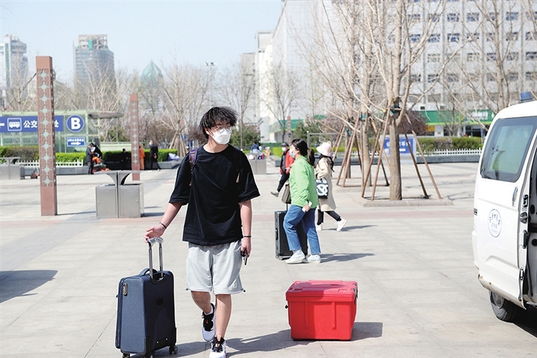 4月6日,随着我市气温升高,火车站站前广场上,已经有市民提前换上夏装出行。 牛利敏 摄