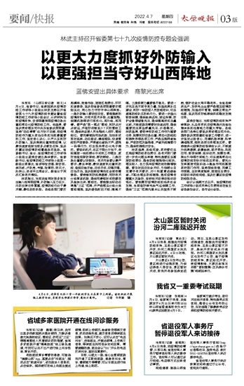 以更大力度抓好外防输入 以更强担当守好山西阵地
