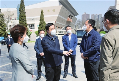 韦韬十分关心疫情防控期间的民生保障工作。他来到太原供水集团东峰路加压站,通过视频监控察看设备运行情况,听取全市特别是“三区”水电气等民生基础设施运行保障汇报,强调要全力克服疫情影响,科学精准调度,强化应急值守,确保疫情期间民生保障工作“不断档”“不掉线”。随后,韦韬深入市应急物资储备北营库,实地察看成品粮油储备垛,详细了解全市粮油、肉蛋奶、蔬菜等物资储备、调配、供应等情况,强调要密切关注供应地疫情形势变化,加大本省农产品货源组织,打通物资供应“最后一公里”,切实满足群众基本生活需求。