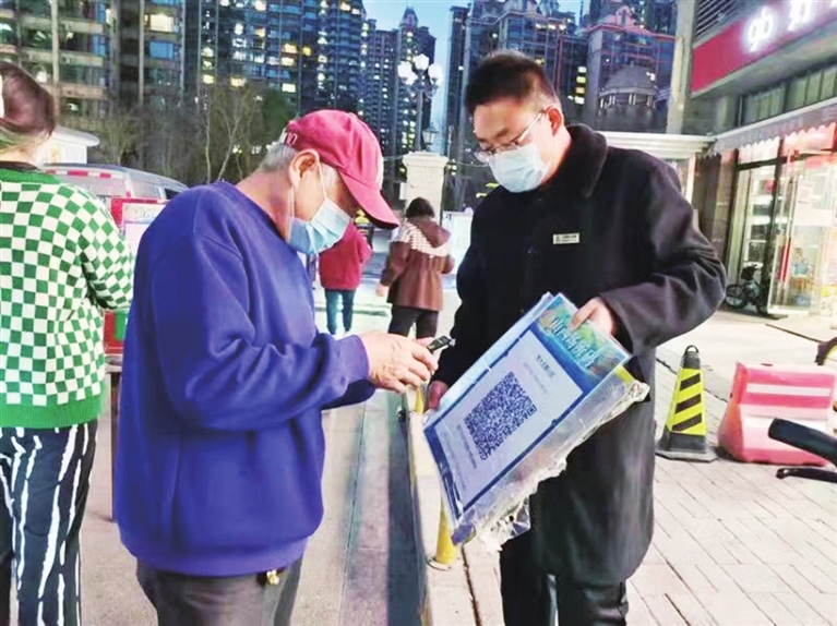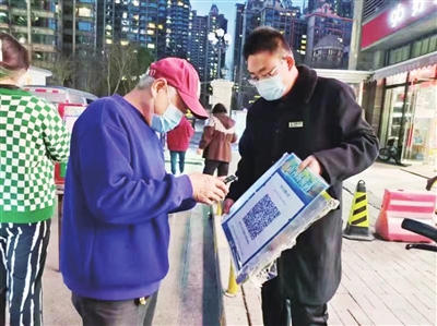 为防控疫情,连日来,尖草坪区名都社区的物业工作人员和网格员走上一线,严管小区出入口,无论车辆还是行人,必须扫验“场所码”才能进入小区。