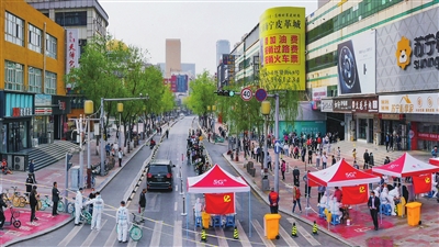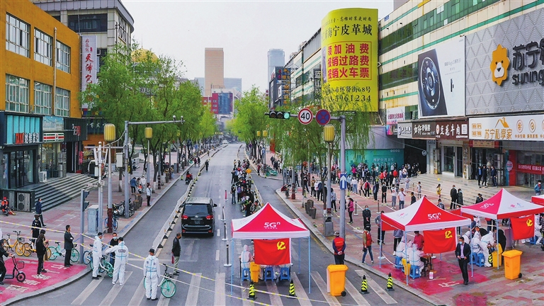 4月11日,迎泽区全员核酸检测有序进行。图为柳北核酸检测点。 记者 宿晓健 摄