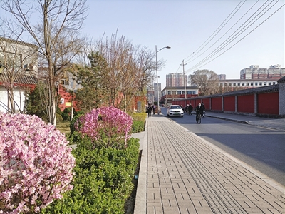 走不多远,左边的小游园里,白色玉兰花、粉色的桃花、紫色的丁香花尽情开放,焕发新绿的灌木与美丽的花朵相映生辉。走在文庙巷,既能感受历史的厚重,又能享受现代文明带来的美好景致。