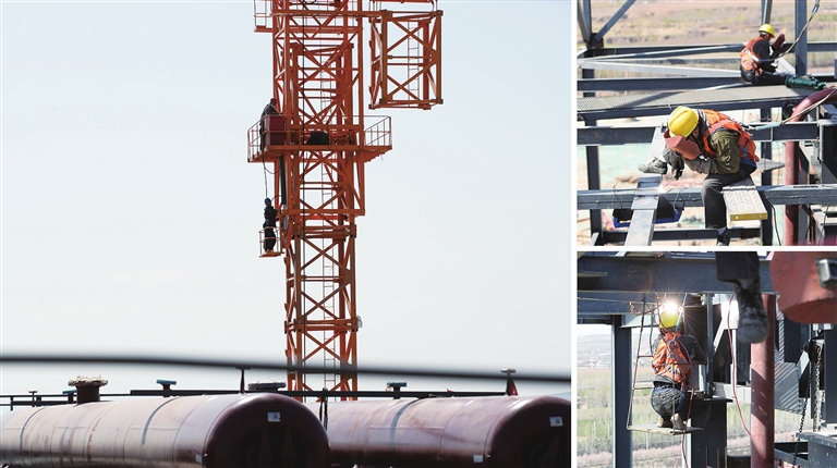 4月11日,市集中供热阳曲热源项目工地上,工人们正在紧张作业。该项目设计供热面积2000万平方米,为太忻一体化经济区、市区以及阳曲县进行供热。建成后,将成为国内一流的综合性绿色能源热源厂。 李学军 牛利敏 摄
