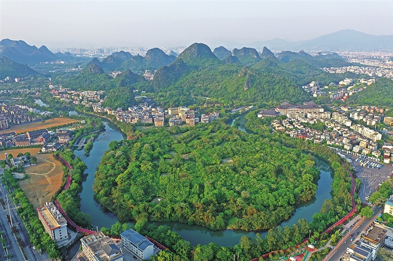 春意日浓,广西桂林市城区山清水碧,草木葱茏,一派宜人景色。 新华社 发