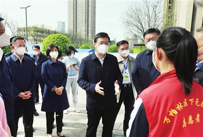 万柏林区幸福里小区是本轮疫情处置划定的管控区,实行“人不出区、严禁聚集”管理措施。韦韬走进小区,实地检查封控、管控工作,详细了解网格管理、力量配备、党员干部报到等情况,来到小区便民物资存放点,察看防疫物资储备和居民基本生活保障情况,向一线疾控、公安、街办、社区工作者和志愿者等致以亲切问候,嘱咐大家要注意身体、做好防护,并委托他们向理解支持配合的广大居民表示慰问和感谢。他说,你们夜以继日的辛勤付出,为疫情防控提供了有力保障。希望大家再接再厉、坚定坚守,切实筑牢疫情防控严密防线。