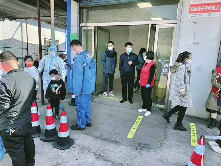 接到核酸检测的通知后,社区居民陆续赶来,很快就排起了长龙。有个妈妈带着刚满周岁的三胞胎,排在队伍中间。时间一长,孩子哭闹起来,妈妈左哄右抱,急得满头大汗。党员志愿者田秀芬看到后,急忙过去帮着照看孩子。