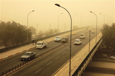 当日,伊拉克巴格达遭遇沙尘暴天气。 新华社 发