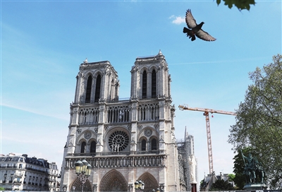 巴黎圣母院始建于12世纪,是法国最具代表性的古迹之一。2019年4月15日,巴黎圣母院的屋顶和塔尖在突发大火中被烧毁,但主体建筑得以保存。法国议会两院曾通过法案,要求重建工作确保巴黎圣母院恢复原貌。2020年,巴黎圣母院大火一周年纪念日时,马克龙承诺5年内完成巴黎圣母院重建工作。