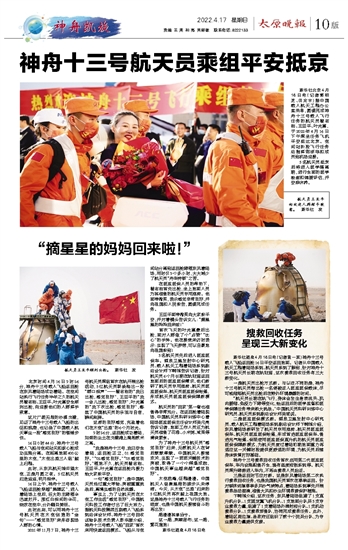 神舟十三号航天员乘组平安抵京