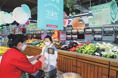 4月18日,尖草坪区南寨街道朝阳社区一超市内秩序井然,货品丰富。随着疫情得到控制,生产生活有序恢复。 张昊宇 摄