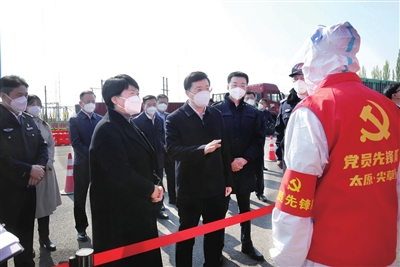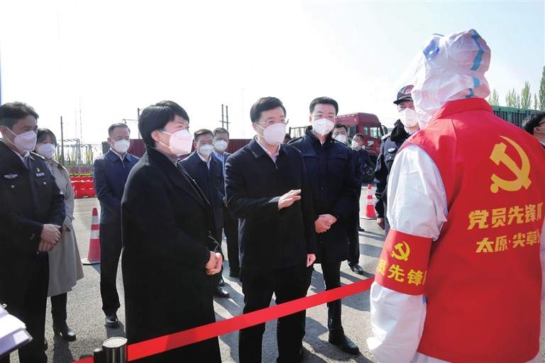 太原绕城高速柴村卡口是本轮疫情中物资入并的重要站点。韦韬来到高速口,详细了解来返车辆人员检疫检测流程,实地检查两码查验、落地检测、转运衔接、运输保畅等情况,向正在联合执勤的公安、卫健、交警、交通等部门同志表示慰问。他指出,正是你们的坚守和付出,为全市疫情防控构筑了坚固防线,希望大家在守好守牢第一道防线的同时,全力保障好货运物流特别是重要生产生活物资运输的安全畅通。卡口现场,党员先锋岗红色醒目。韦韬认真了解临时党支部作用发挥情况,强调要充分发挥党组织战斗堡垒作用和党员的先锋模范作用,冲锋在前、主动担当,让党旗在疫情防控一线高高飘扬。