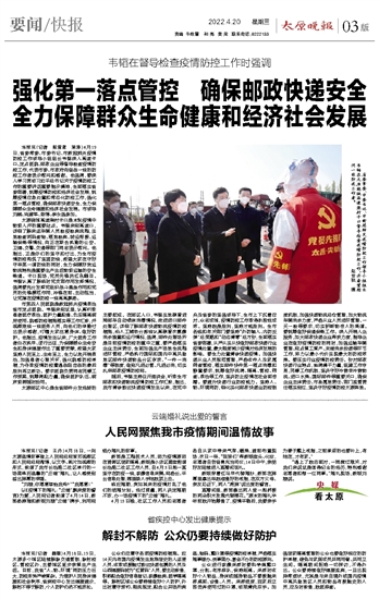 强化第一落点管控 确保邮政快递安全 全力保障群众生命健康和经济社会发展