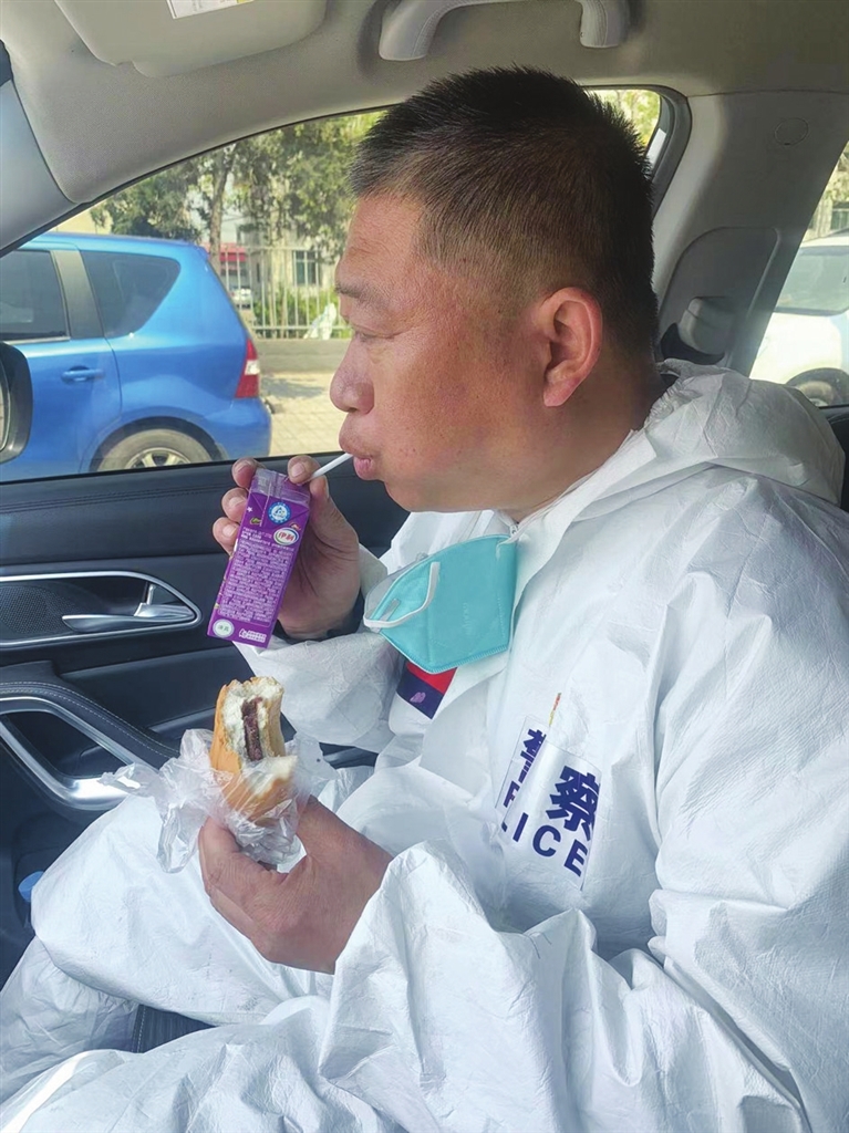 紧接着,东罗白、西罗白、东木庄、西谷村,先后出现病例。为确保辖区不出事,王强身先士卒,一直奋战在战“疫”一线。这些天,他没有正点吃过一顿饭,没有睡过一个囫囵觉,渴了咕咚咕咚灌点矿泉水,饿了随手找点食物对付一下,即使吃东西的时候,他也不消停,事无巨细地“操着心”:村里的挡板都弄好了没,增援警力的后勤保障到位了没,防护物资是否充足……