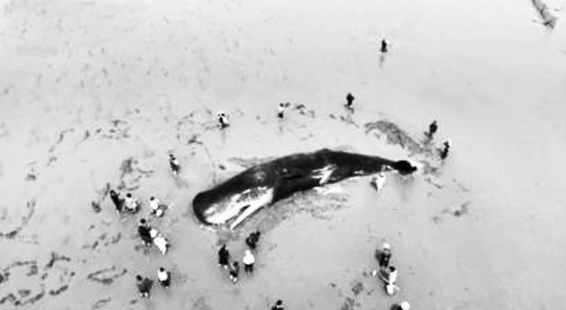搁浅抹香鲸游回深海