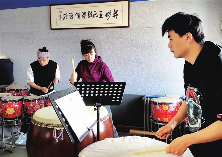 4月21日,山西鼓乐艺术非遗传承人王晟和队员们排练新创作的节目,以“艺”抗疫。 牛利敏 摄