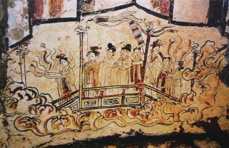 此外,到了隋唐,带有道、佛观念的宗教题材也开始出现在壁画中。