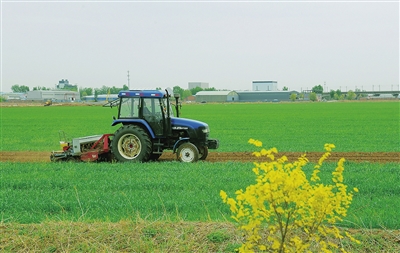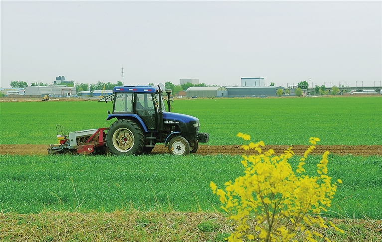 4月22日,小店区刘家堡乡东里解村,冬小麦已经返青,农机正在套种作业。该村在做好防疫工作的同时,加紧春耕春播,抢抓农时。赵世凯 摄