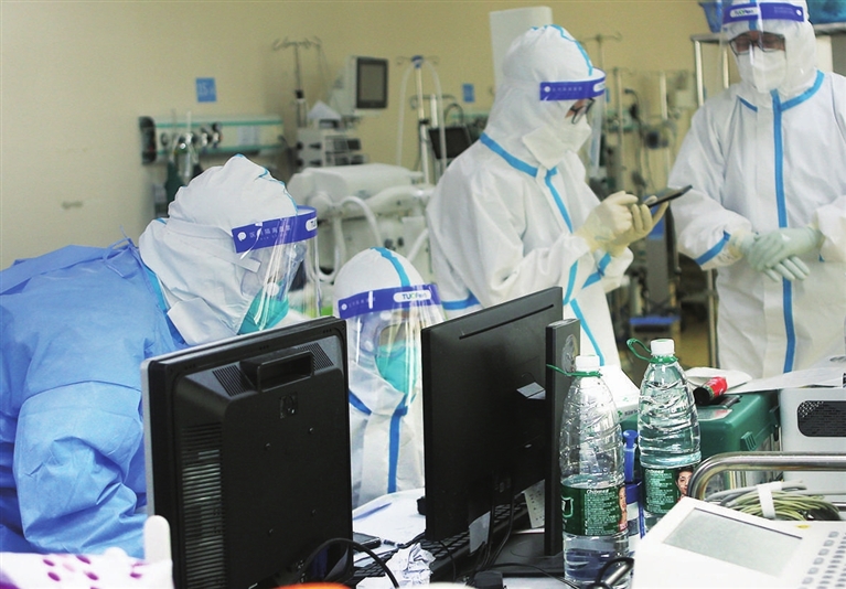 这里,每天下午都会举行线上会诊。定点医院内的医生和母体医院的专家就在院重症患者的诊疗方案,逐一探讨,精准制定“一人一策”。