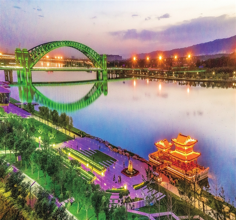 4月25日,初夏的汾河景区“汾河晚渡”段,水天一色,游人漫步,构成一幅“北国江南”的画图。徐浩轩 王金力 摄