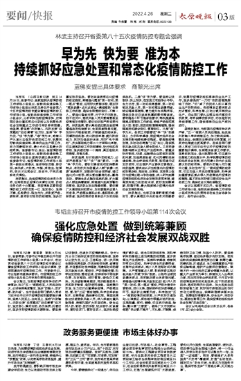 早为先 快为要 准为本 持续抓好应急处置和常态化疫情防控工作