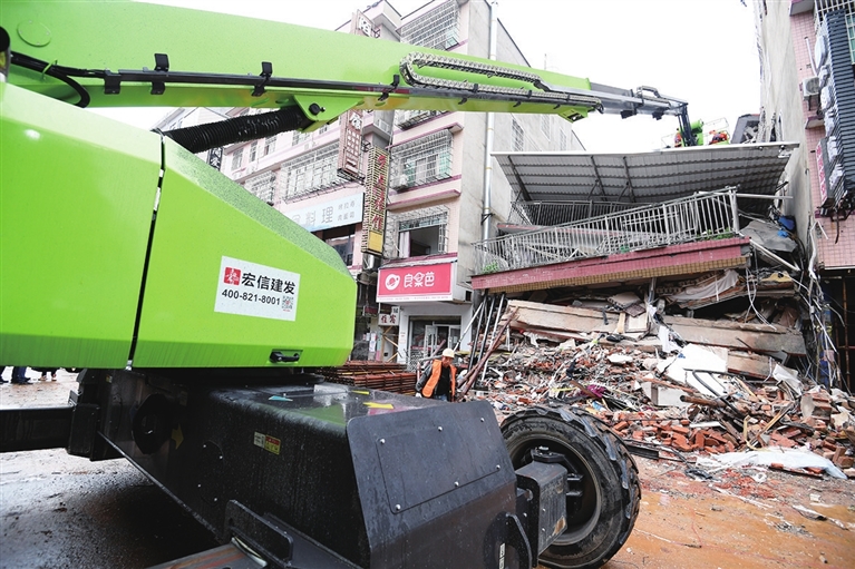 由于倒塌房屋对两侧房屋形成挤压,造成两侧房屋严重受损,随时有倒塌的可能。为防止次生灾害,经专家组和救援队现场会商,在积极搜救的同时,紧急加固东西两侧受损严重、随时可能倒塌的房屋,并立即转移周边群众,同时做好现场周边房屋的安全鉴定工作,消除安全隐患,全力保障施工救援现场环境,畅通大型救援设备进出和伤员救治通道。