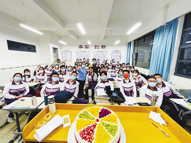 热闹的气氛引来了校领导,得知有学生过生日后,也送上祝福:“让我们47天以后一起摘下那颗最亮的星!”