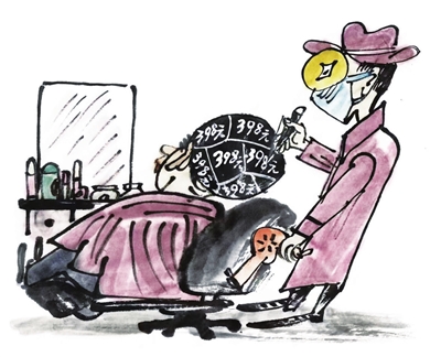 最近,杭州的刘先生遇到了一件“离谱”事,他去理发店给头发做造型,店员报价398元的“服帖烫”,收款时却变成了4776元。店员解释说,是按区域收钱,刘先生头上被分成了12个区域,每个区域都收398元! (《钱江晚报》5月9日)