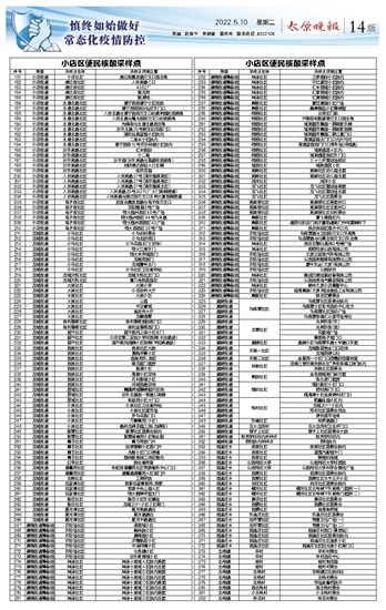 | 太原晚报 慎终如始做好常态化疫情防控 14 2022-05-101 2022年05月10日 星期二 |