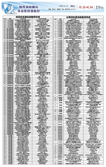 | 太原晚报 慎终如始做好常态化疫情防控 19 2022-05-101 2022年05月10日 星期二 |