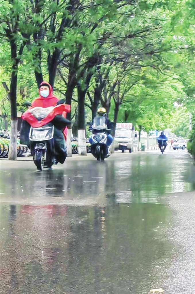 5月11日,我市迎来降雨,市民在雨中骑行。受冷空气影响,未来三天,我市将持续出现阴雨天气,最低气温降至7℃。市民出行注意防寒保暖。 徐浩轩 摄