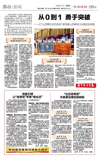 ~~~——记“山西青年五四奖状”获得者山西移动5G联创实验室