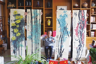 今年,赵梅生的中国画作品《习近平用典》配画、《梅兰竹菊》四条屏,亮相维也纳联合国中文日艺术展播,像一股春风扑面而来,人老画新,有美感、有生活、有使命。