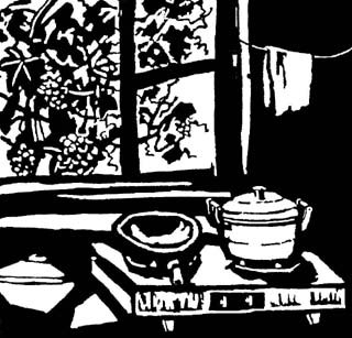 在煮蔬菜的同时,主妇们早已将细细的黑杂面条擀好了,面条下到锅里,这时豆香和玉米的香味弥漫开来。