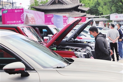 5月15日,2022太原第13届车博会在万达广场举行,吸引了众多市民赏车、咨询、选购。 张昊宇 摄