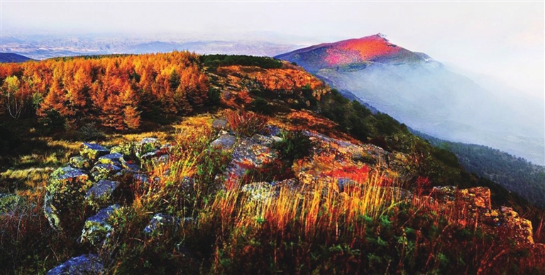 沿原平川线,驱车往长安乡方向出发,不久就会看到一座黛色大山横亘眼前。这就是狐爷山,是古交市与交城县的界山,也是中华“忠”文化的发祥地之一。据史籍记载,狐爷山是春秋时期晋文公重耳的外祖父——晋大夫狐突活动、居住的地方。狐爷山景色秀丽、风光旖旎。山上林木茂密,松树高大挺拔,林带内有一尺多厚的枯枝败叶,松软油滑;山间溪水环抱,清冽见底;山顶是一眼望不到边的草坡,山风吹过,掀起层层草浪。
