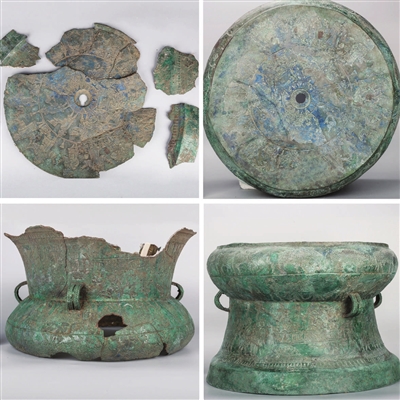 如今,一件件精美完整的贮贝器在云南省博物馆展陈,观众们可以近距离地欣赏感受其中蕴含的历史和艺术价值。然而,当它们出土时,却是残缺破碎、锈迹斑斑的模样。
