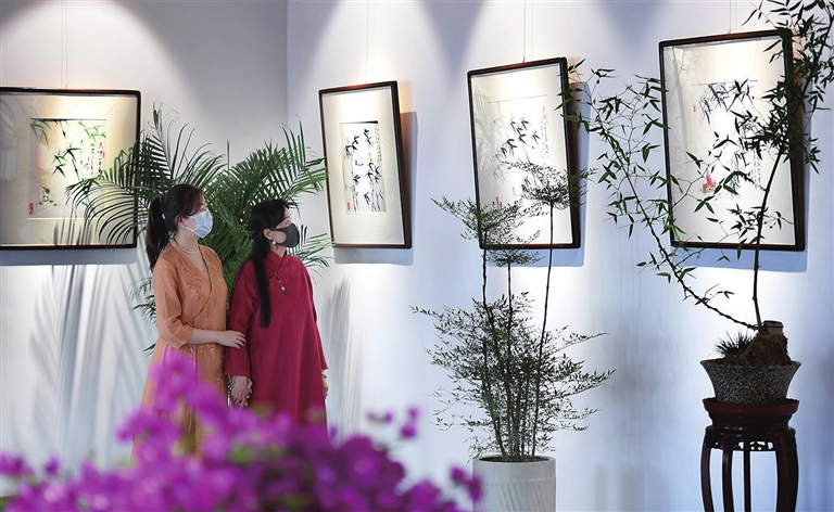 5月20日,由太原市文物局、晋源区人民政府主办,太原日报社视觉策划中心等新闻单位协办的“竹报平安”牛力水墨竹展在“竹报平安”成语产生地——龙山展出,为游客带来更加丰富的文旅体验。 邓寅明 摄